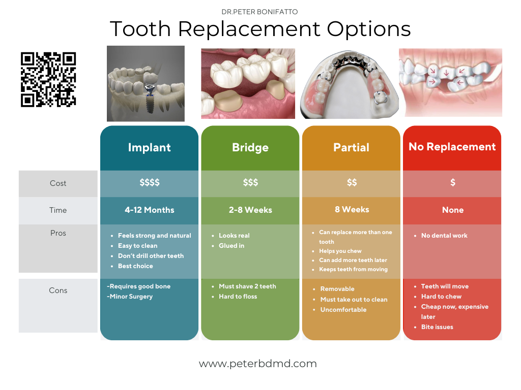 This chart lays out implants, bridges, partials, and “do nothing” in plain language.